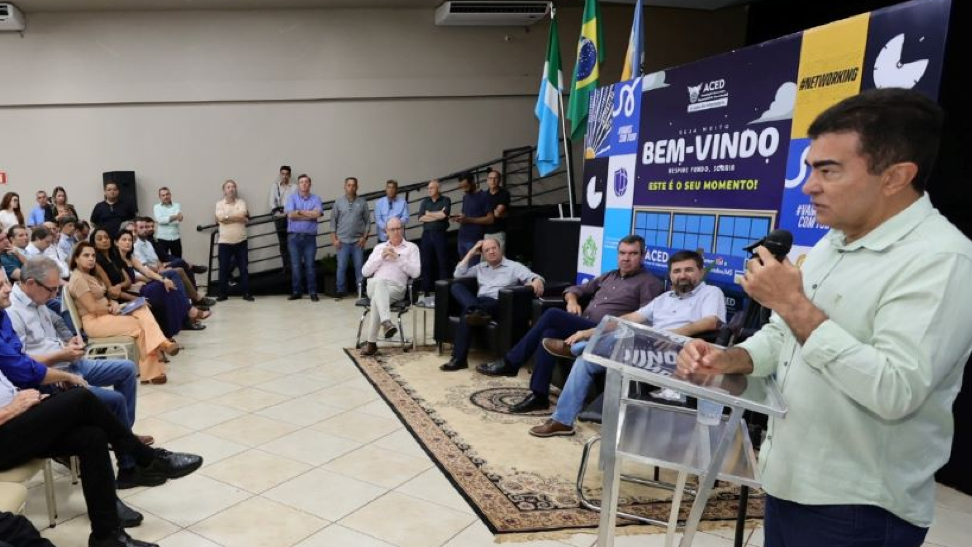 Marçal Filho discursou para lojistas e empreendedores que preencheram o auditório da Associação Comercial e Empresarial de Dourados, bem como para os produtores do campo que prestigiaram o início da 60ª Exposição Agropecuária e Industrial.